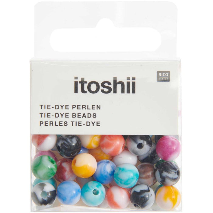 Tie-dye beads, colour mix, 48 pcs, ? 8 mm