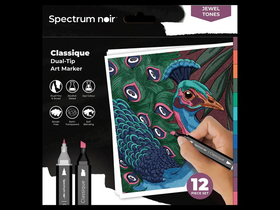Dual-tipped with the classic combination of broad-chisel and fine-bullet nibs, Classique markers from Spectrum Noir are the everyday go-to for a vast range of creative applications. Use them for everything from illustration and sketching through to professional design.