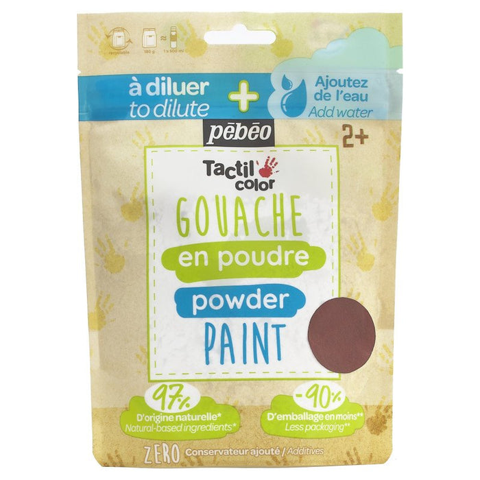 100 g resealable bag of Tactilcolor concentrated powder gouache for dilution, specially developed for schools and groups. Use 160 g of product to reconstitute approximately 280 ml of finger gouache or 5000 ml of liquid gouache.