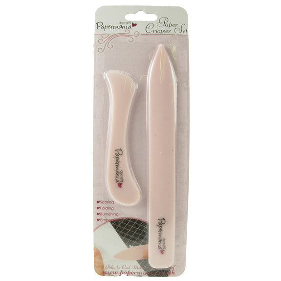 2 Plastic tools used to give a folded edge a professional finish. Ideal for rub-ons, smoothing, and burnishing. Length of crease tool 21cm. Length of bone folder 12cm