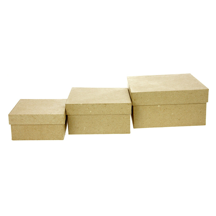 Set of 3 Kraft Paper Mache Boxes: Square Medium