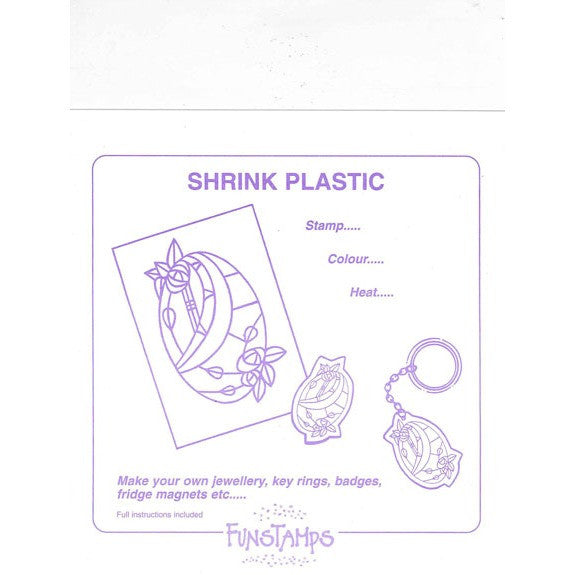 The pack contains 6 sheets 20cm x 26cm in size.Stamp an image onto the rough side of the sheet using a Light Mettallic ink pad or Light Colour Versacolour pad.Allow to dry .The image should not exceed 13cm x 10cm in area.Take into account that your picture will be 7 times smaller.It can be heated in a coventional oven or using a Heat Tool.