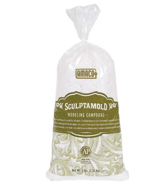 Sculptamold® is a dry, white, non-toxic compound that combines the best features of clay, plaster, and papiermache, does not shrink, and is durable for dioramas, 3-D sculptures, model railroad scenery and stage scenery.