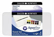 A compact and convenient pocket sized set with 12 colours, a travel brush and mixing palette on the lid. Includes : Lemon Yellow, Hookers Green, Gamboge, Yellow Ochre, Cad Red, Raw Sienna, Alizarin Crimson Hue, Light Red, Cobalt Hue, Burnt Sienna, Ultramarine Blue and Paynes Grey.