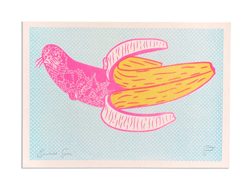Strangford“Banana Seal”A three colour riso print available Fluoro pink, light blue and yellow.Printed on 250gsm recycled paper.A4 size - 210 x 297mmIndividua...
