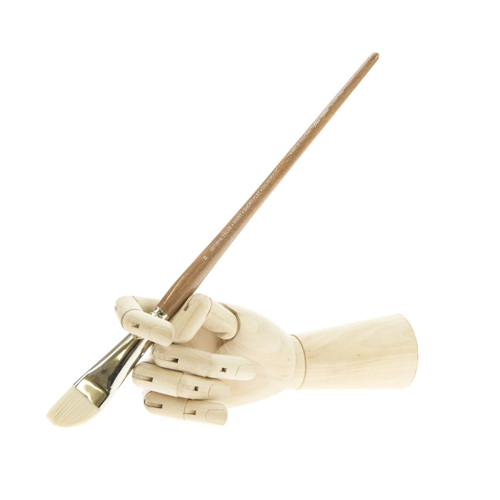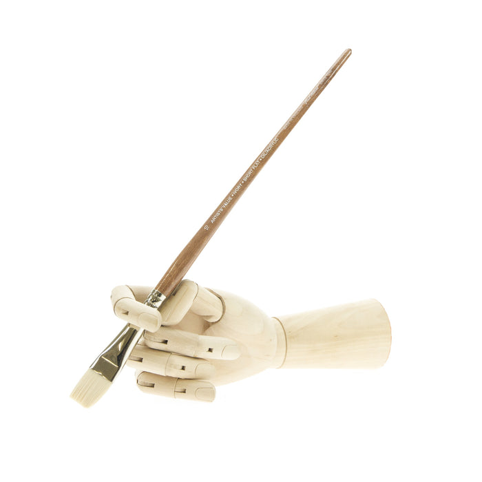 This range is designed with the acrylic painter in mind. Formed from a mix of firm synthetic bristle. These give the brushes both spring and strength. Taklon provides a natural feel and superb control when in use. Ivory Taklon is also suitable for oil painters who desire a similar strength to that of a bristle brush, but give a sharper and more precise working edge or tip. This range of brushes are made for Fred Aldous by one of the UKs leading brush manufacturers.
