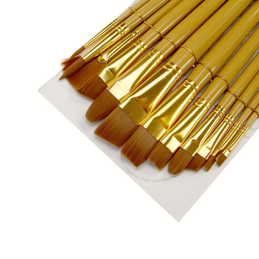 Value Brush Set Gold Taklon LH Flat 12 Pack