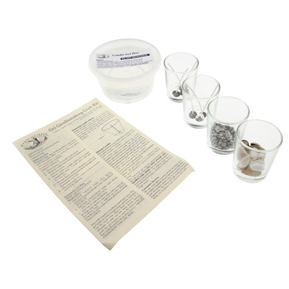 Making candles from clear gel adds a completely new dimension to the ever popular pastime of candlemaking. This kit makes a stunning selection of clear gel candles decorated with shells and pebbles displayed in candle glasses. Contents: gel wax, 4 candle glasses, wicks, natural shell collection, silver pebbles, instructions.