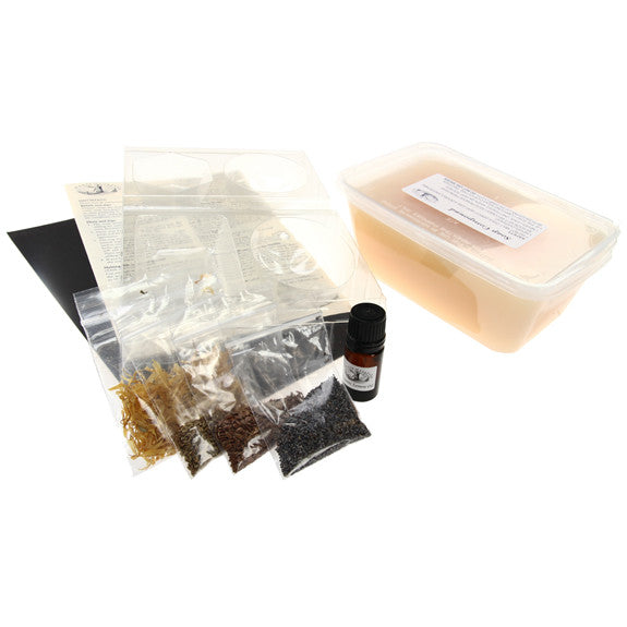 Contents: soap compound, soap mould tray, organic essential oil aniseed, linseed, poppy seed, marigold petals, instructions.