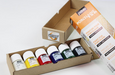 Porcelain 150 gloss initiation set 6 x 20 ml : ivory, citrine, scarlet, lapis, olivine, anthracite. Water base for creation on porcelain objects (tableware).