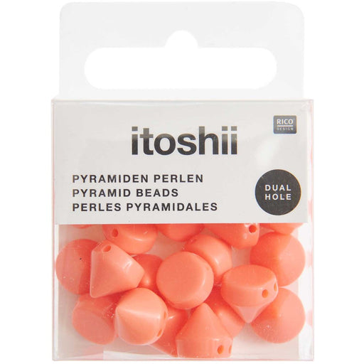 RicoPyramid beads, round, neon orange, 24 pcs, 10 x 10 mm, 4 holes