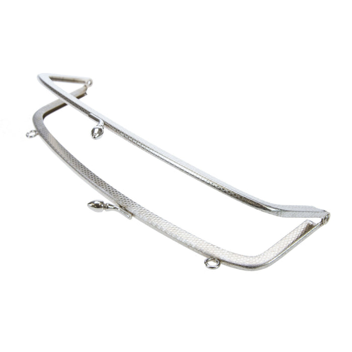 Silver colour purse frame with circular pattern emboss. 184x65mm, 71/4x23/4”. This is a genuine vintage item, due to its age some tarnishing may have occurred. The metal and type of plating cannot be confirmed.