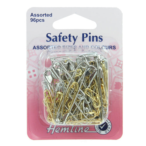 Hemline Safety Pins 96pk Assorted Sizes, Gilt/Nickel Plated