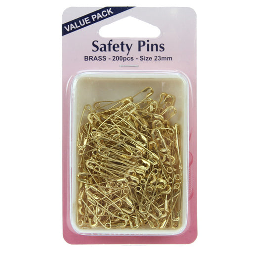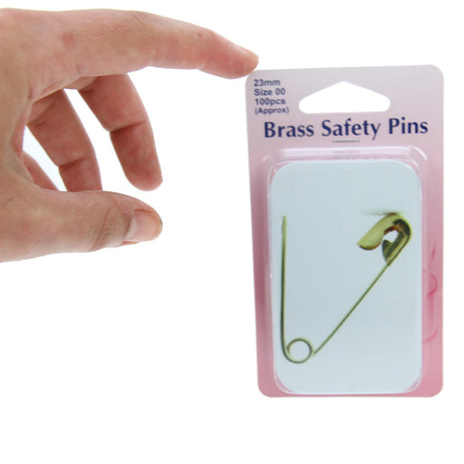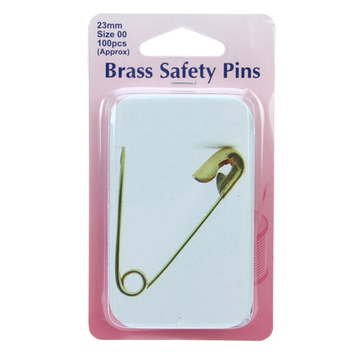 HemlineBrass safety pins, 100 pieces, 19mm and 23mm, 50 pieces each.