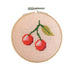 The 4" (11cm) hoop features a vibrant cherry motif on coloured Aida fabric, stitched with a blunt needle — safe for supervised younger crafters too.
