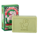 Our Savon d'Archivist seaweed scented green soap embossed with a poodle, in bold green and red decorative packaging that features a grumpy poodle.