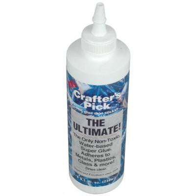 Crafters Pick Ultimate Tacky.A Unique New Non-Toxic Adhesive Which Bonds To Plastic, Metals, Painted Surfaces & More! Usable As A Liquid Glue Or As A Contact Cement! To Use As A Contact Cement Coat Both Surfaces, Allow To Dry Clear & Press Togeather. Replaces: Toxic Solvent Based Glues, Hot Melt Glue Guns, Rubber Cement, Ineffective Craft Tacky Glues And Epoxies. Adheres To: Metals, Plastics, Ceramics, Vinyl, Fiberglass, Painted Wood, Paper, Leather And More.