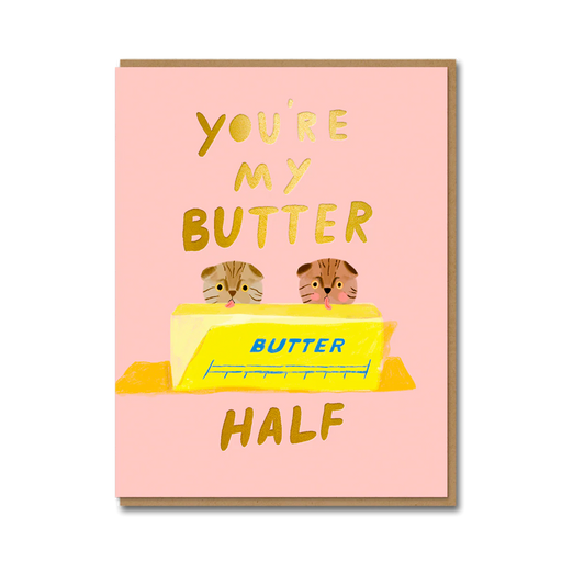 Carolyn Suzuki GoodsThis card leans fully into soft absurdity — a love note wrapped in butter, gold foil, and two extremely committed cats. Illustrated by Carolyn Suzu...