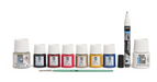 45ml: Pure white - 20ml: Sunflower yellow, Deep red, Ultramarine blue, Extreme black, Fluo pink, Glitter gold
