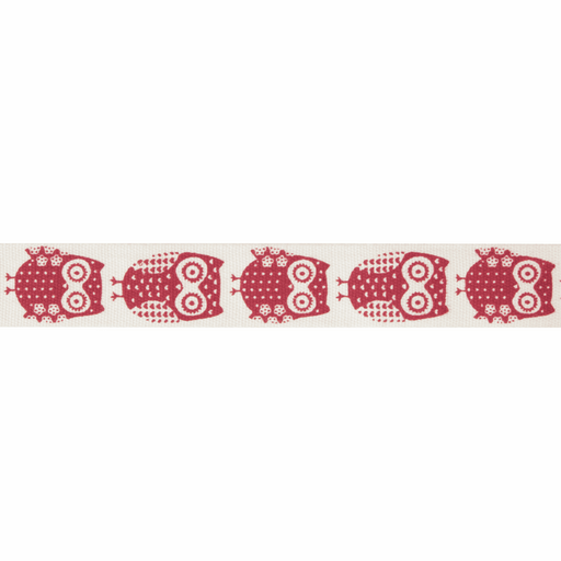BowtiqueNatural Trim- 5m x 15mm - Owls - Red