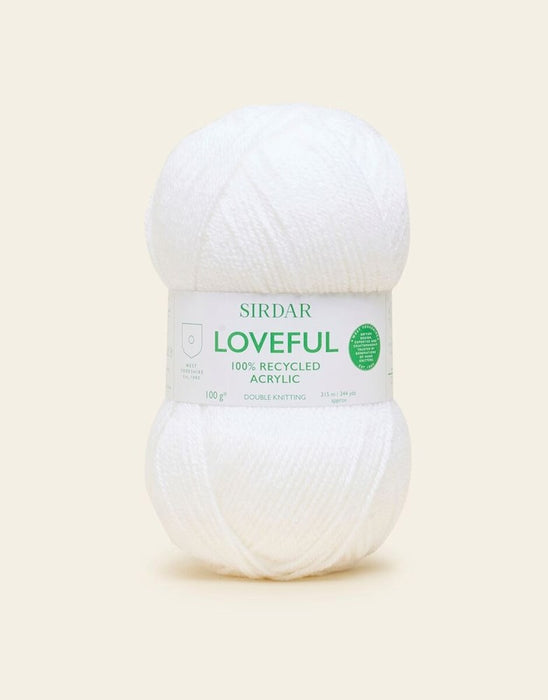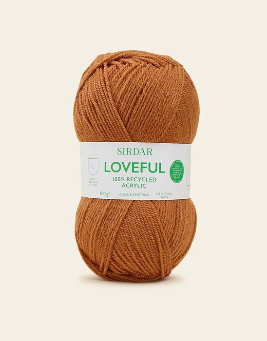 Sirdar Loveful 100% Recycled Acrylic DK is a soft, smooth double knitting yarn made entirely from recycled acrylic fibers. This eco-friendly yarn offers the quality and reliability expected from Sirdar, allowing crafters to reduce waste while knitting or crocheting. Available in a range of trend-led shades, each batch is unique due to the nature of recycled materials, so it's advisable to check dye lots before starting a project. SIRDAR Key Features: Composition: 100% Recycled Acrylic Yarn Weight: Double Knitting Ball Weight: 100g Length: Approximately 315 meters (344 yards) Tension: 22 stitches x 28 rows to 10cm / 4" Recommended Needle/Hook Size: 4.0 mm (USA 6) Care Instructions: Machine washable on a wool cycle; wash dark colours separately; do not iron; do not tumble dry; dry flat; reshape while wet; do not dry clean; do not bleach. SIRDAR This versatile yarn is suitable for various double knitting projects, including stylish knitwear designs and cozy crochet blankets. Its soft and smooth texture ensures a pleasant crafting experience and comfortable wear.