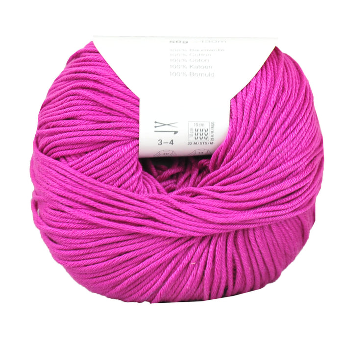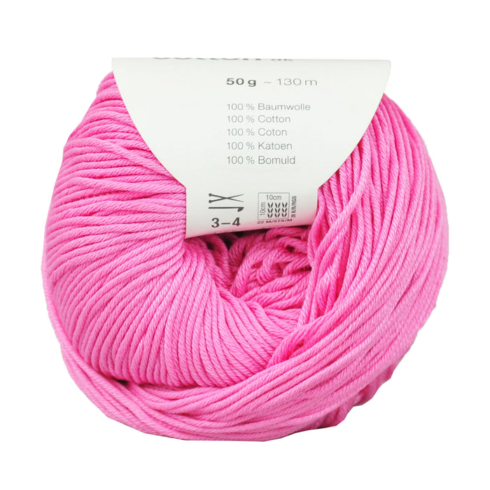 Essentials Cotton dk from Rico Design is a high-quality, mercerised fine cotton with a beautiful shiny effect. With this yarn you can realise fine knitting and crochet projects all year round.