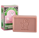 Our Savon d'Archivist fig scented pink soap embossed with a poodle, in bold pink and green decorative packaging that features a grumpy poodle.