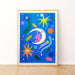 Blast off with Space Bunny! This playful A3 print bursts with retro charm and cosmic colour, brought to life through a 3-colour Risograph process.