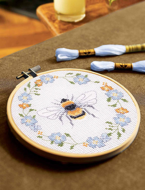 DMCStitch a charming bee surrounded by a wreath of delicate blue and yellow flowers with this cross stitch design. The kit includes everything you nee...