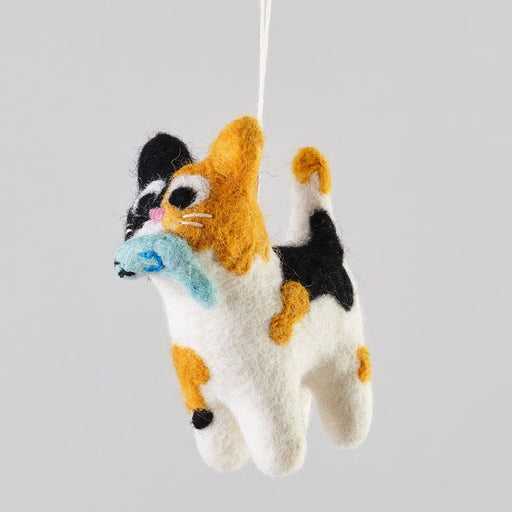 WrapDwight Felt Decoration by Wrap. Hand needle felted hanging Christmas tree decoration. Dwight the cat is proudly holding a fish in his mouth.Ethical...