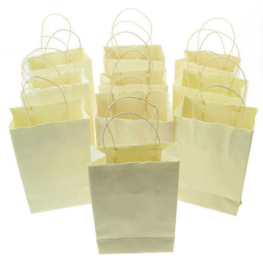 Handmade Recycled Paper bags from South India. Made from 100% recycled cotton rag. White 10 packMini 8x5x6cmLarge 25x10x12cmSmall 14x10x5cm