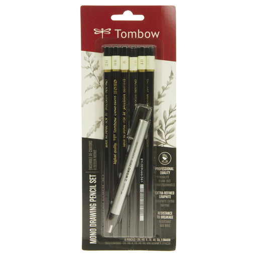Professional quality pencils. 6 pencils: 2H, HB, B, 2B, 4B, 6B. Eraser pen with 2.3mm tip.