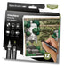 This 12-piece Woodland Nature set includes Olive Green, Forest Green, Avocado, Grass, Alpine Green, Ivy, Umber, Mocha, Cocoa, Coffee Bean, Brown Grey 5, and Brown Grey 8.