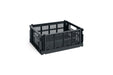 HAY’s Colour Crate is a series of handy, adaptable storage boxes with a perforated design. Made from 100% recycled post-consumer plastic, these stackable crates come in cubes, squares, and rectangles in a wide variety of colours and sizes. They can be supplemented with lids and wheels, and placed inside each other in multiple configurations, making them ideal for storage, display, and even innovative furniture items. Their multifunctionality, combined with their ability to be folded flat when not in use, makes them a versatile and space-saving storage solution.