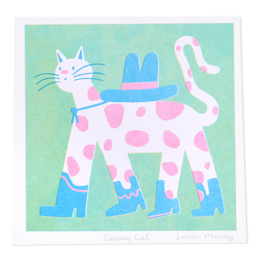 Lauren Morsley'Cowboy Cat' Square Risograph Print.160gsm Echo paper. Riso is an eco-friendly print process with a unique aesthetic.Prints are signed and packaged...