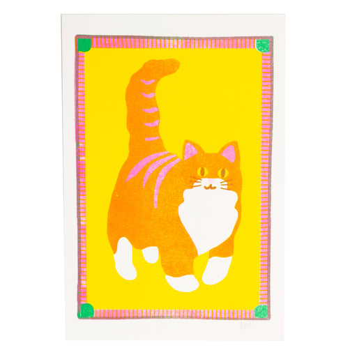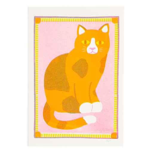 Naomi WilkinsonThis playful risograph print features a slightly grouchy orange and black cat, printed using eco friendly soy based inks on recycled paper stock. E...