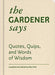 The Gardener Says invites readers to a festive garden party where guests ranging from Gertrude Jekyll and Henry David Thoreau, to Michelle Obama and Michael Pollan share their insights and words of inspiration. Ranging from the humorous to the poignant, these quotes from gardeners, poets, philosophers, and landscape designers highlight both the joys and challenges of gardening—the exhaustion at the end of a long day's work, the satisfaction of seeing a flower blossom, the peace and happiness of time spent in quiet contemplation. A delightful hobby, a potent tool for ecological and social transformation, and a crucial reminder of our place in nature, gardening is, in the words of Mirabel Osler, the one occupation where "if you were to creep up behind someone at their work, you would find them smiling." 160 pages, hardcover. Dimensions: 12.7cm x 17.8cm