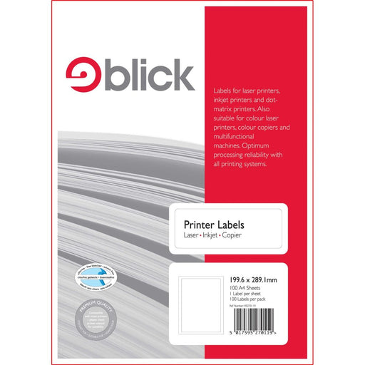 View full detailsBLICK LABELS MULTI A4 199.6MM X 143.5MM 2 BLICK LABELS PER SHEET