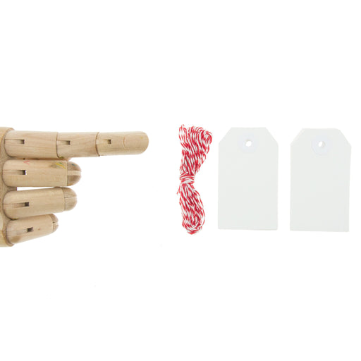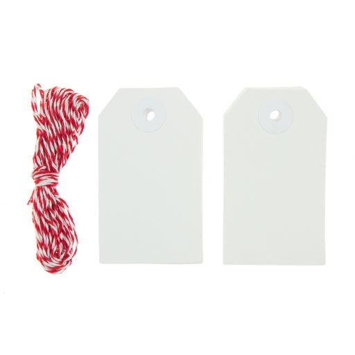 20 gift tags 45mm x 76mm with red and white string.