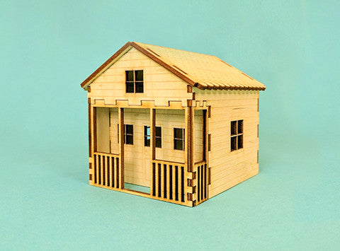 We developed a flatpack shed that could be posted out flat and built by the recipient. This project involved designing a shed, fitting the elements onto an A4 3mm ply sheet and adding small connectors so all the pieces would stay in place but could be easily removed by the person building it. We also designed and printed instructions on how to construct this cute little model shed.