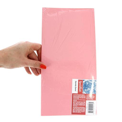 SPEEDBALL-Speedy Carve. Make your imprint on the world by creating your own rubber stamps. This package contains one 6x4in easy to cut; flexible and non-crumbling 1/4in thick sheet of pink speedy carve rubber. You can use a slightly warm iron to transfer images of pencil drawing; newsprint and freshly printed ink jet and laser print images. Use only with water soluble products.