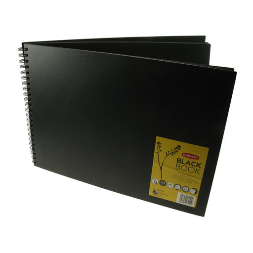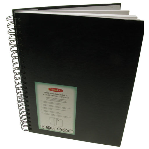 Wire bound elasticated sketch book with a hard black vinyl cover. Also features perforated pages to enable easy removal, wider rings to accommodate extra paper, an elastic band to keep loose papers in place and an expanding pocket at the back to store additional items. 56 pages. 165gsm acid free paper.