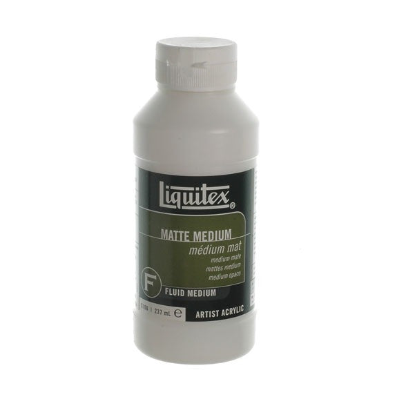 Mix medium viscosity Matte Medium with acrylic colours for completely matte, dull and flat effects and a non-reflecting finish. When mixed with acrylic paint, it extends colour, eases paint flow, increases transparency, matte and film integrity and adds to the flexibility and adhesion of paint film. It is opaque when wet and translucent when dry. Use it as an extender, a fixative, or a ground. Mix with Gloss Medium for a semi-gloss or satin medium.