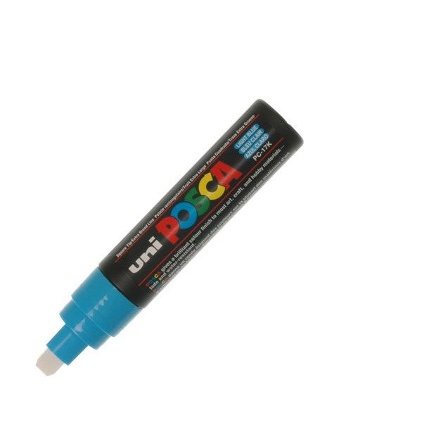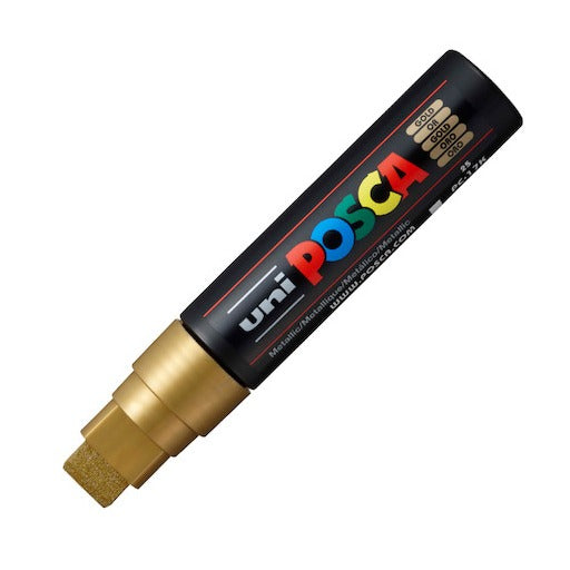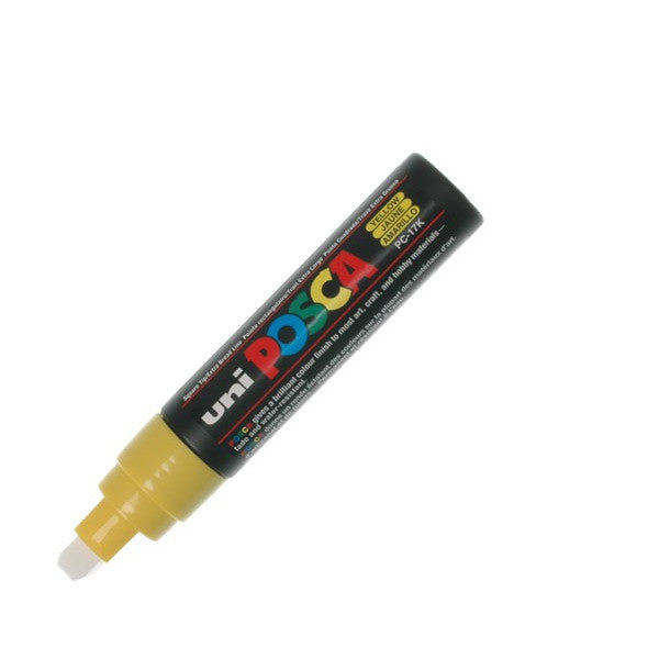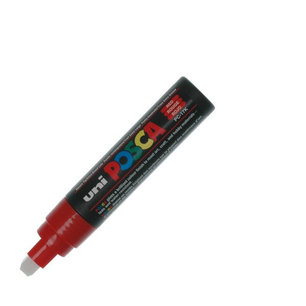 Uni POSCA PC-17K water-based pigment ink marker. Writes on virtually any surface with no bleed through on paper. Acrylic chisel-shaped nib writes an 8mm line. Uni POSCA markers use water-based pigment ink to produce poster-like vibrant colours. Writes on metal, glass, plastic, stone, etc. - virtually any surface. Non-bleed ink doesnt feather and doesnt bleed through paper, unlike alcohol-based markers. Writes on sketches, photographs and fabrics. Easily removed from glass - ideal for temporary signs on windows, windscreens, etc. Let dry after application and new ink can completely cover the previous colour.