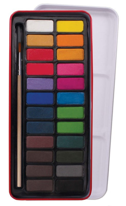 Work Of Art Watercolour Paints help create stunning watercolour artwork wherever you are! This is the perfect portable set with 24 watercolour paint blocks, a paintbrush (colour may vary) and a lid designed for colour mixing.