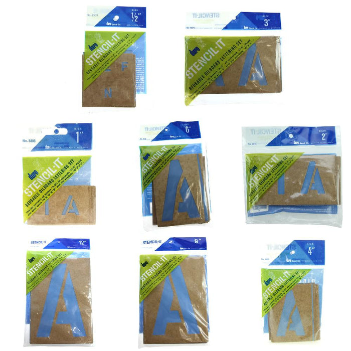These high quality oil-board stencils are great for posters; scrapbook layouts; signs; windows and much more. Use them with paint; ink; chalk by using brushes; markers; pencils; sprays and just about any other application process. These stencils are lightweight, extremely versatile and can be used over and over again. Each package contains uppercase A-Z (with extra A; E; O; R and S); numbers 0-9 and symbols.