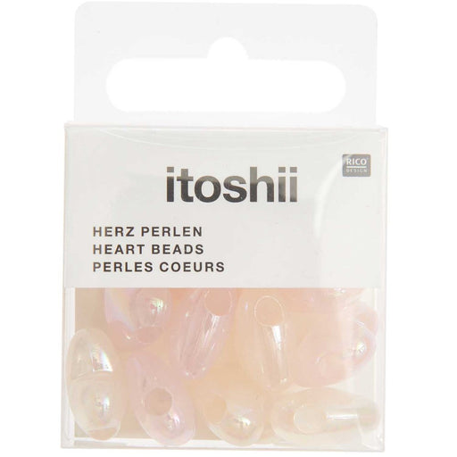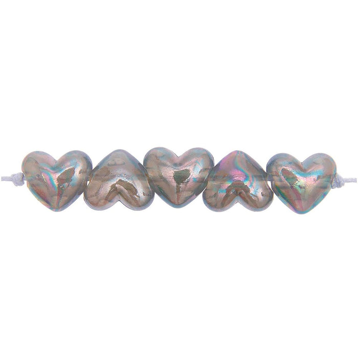 Heart beads holographic, grey, 12 pcs, ca. 17 x 15 x 9 mm