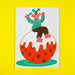 A giant Christmas pudding with a SUPER happy pudding fan sitting on top ready to dig in. Single card packaged in an individual eco friendly cellulose clear bag.