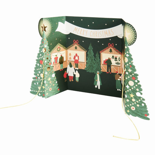 RicoThis pop-up card reveals a beautifully detailed Christmas market scene that unfolds in three dimensions. Featuring market stalls, twinkling lights ...