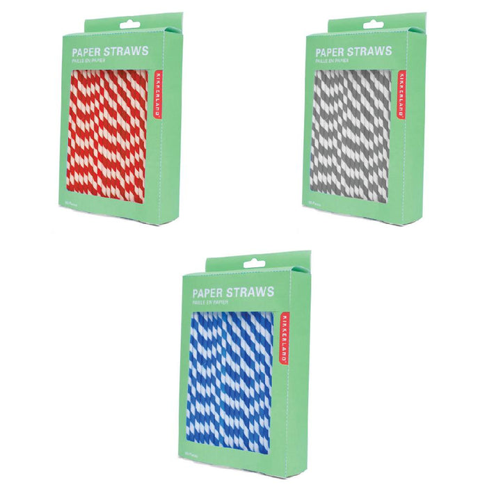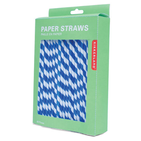 Paper Stripey Straws - 144pk Blue/White